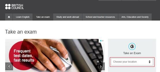 登录英国驻华大使馆文化教育处官网(https://www.britishcouncil.org/),按照以下步骤进行,点击Take an exam。